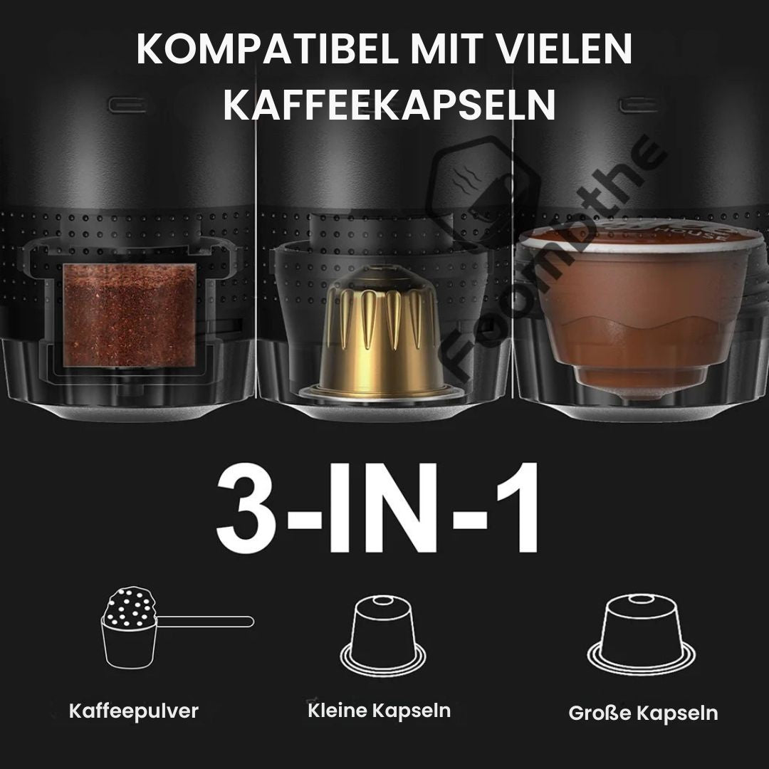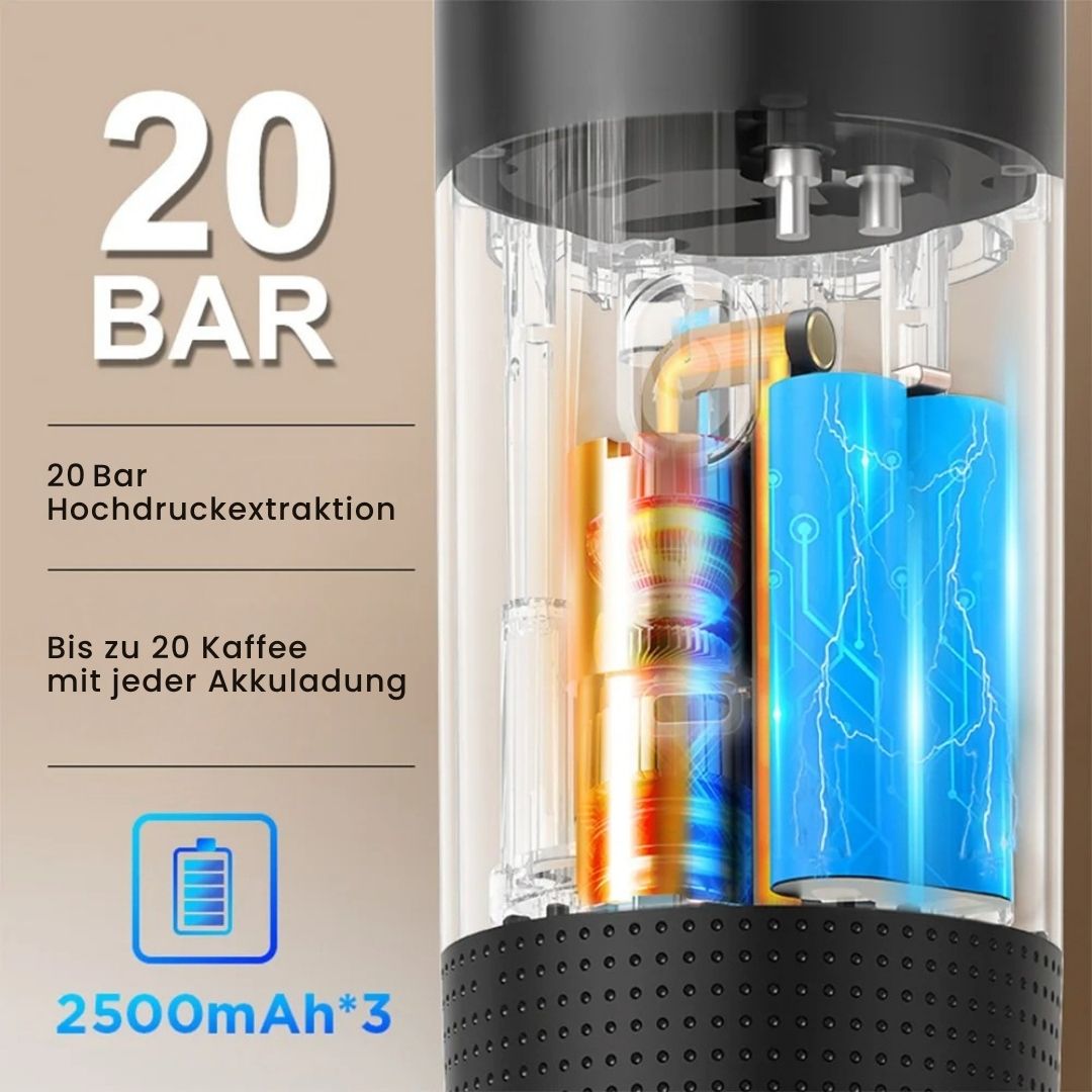 With a built-in battery (3x 2500 mAh), brew up to 20 cups per charge – no outlet needed! Perfect for travel, office, camping, or on the go.
